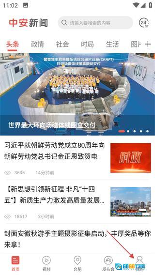 1、打开中安新闻首页,点击底部的“我的”选项,进入个人中心页面。