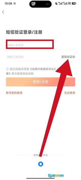 在这个界面的手机号输入框中填写你的手机号码,然后点击“获取验证码”按钮。