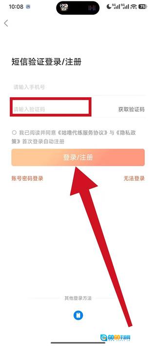 请把收到的短信验证码输入到验证码栏,勾选对应的相关协议,然后点击登录注册按钮。