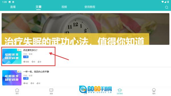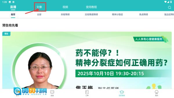 在名医课堂页面,点击文章分类标签,切换至科普文章列表。