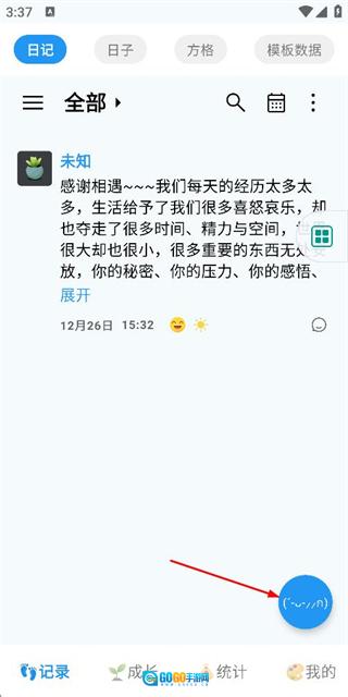 在日记页面点击右下角的编辑按钮,即可进入日记编辑页面。