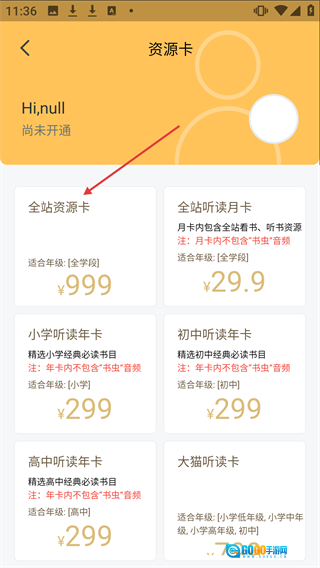 在资源卡页面选择【全站资源卡】,进入其详情页。