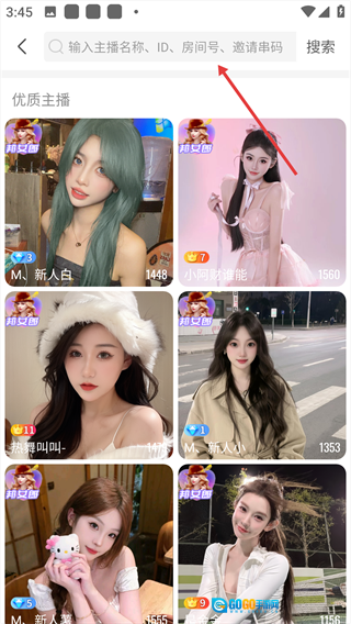 输入主播名称,点击【搜索】。