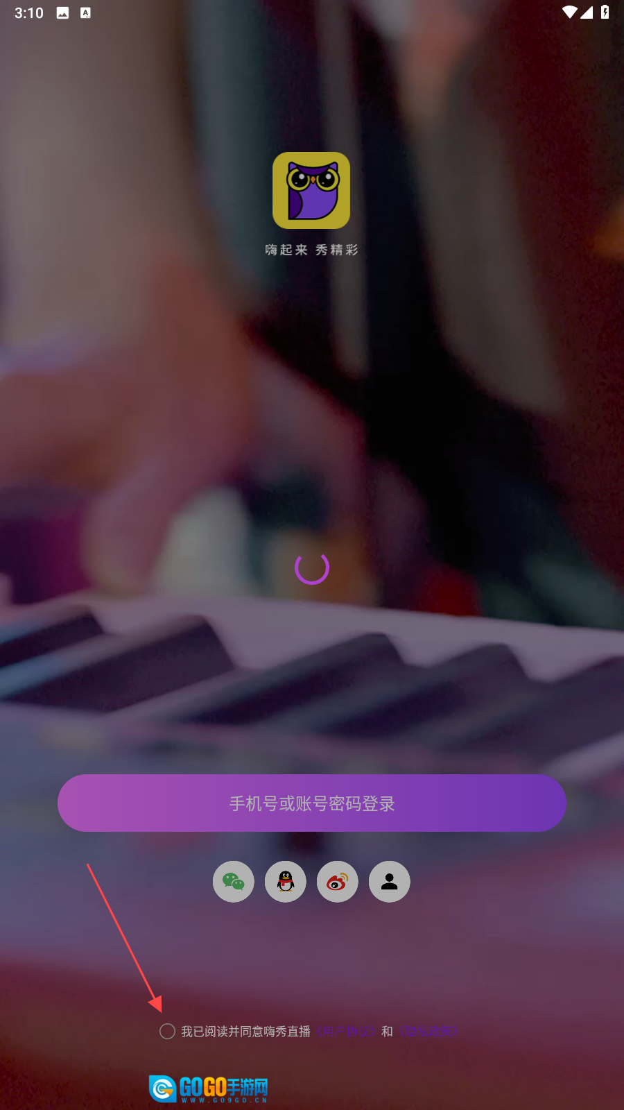 进入应用后,点击【圆圈】我已同意并阅读