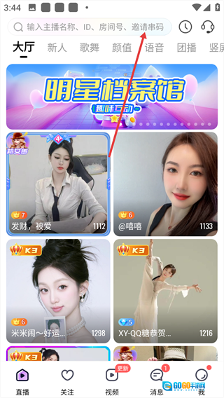 选择目标主播,点击进入其直播间。