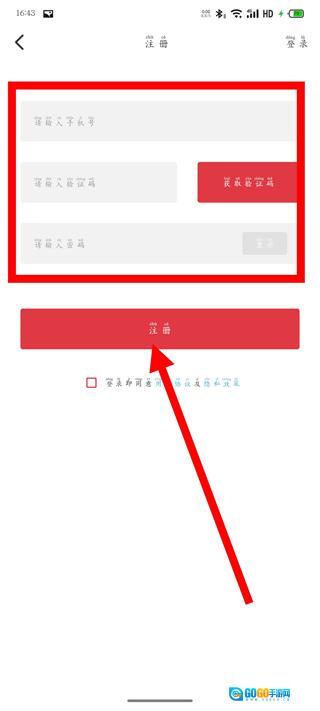 4、进入注册页面后,依次输入手机号与验证码,勾选对应的相关协议,再点击注册按钮,即可完成账号的注册流程。