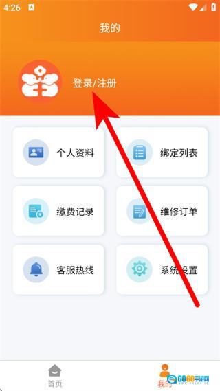 2、在个人页面,点击登录注册,进入登录页面。