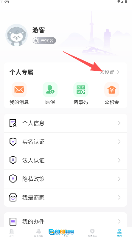 在个人页面找到并点击“去设置”。