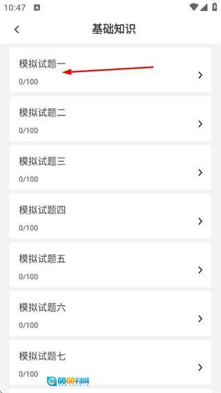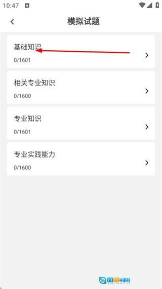 3、在基础知识页面点击目标选项,即可进入该试题的答题页面。