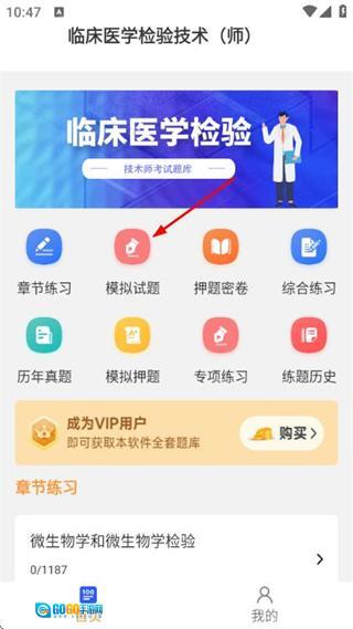 1、在首页点击模拟试题选项,进入模拟试题页面。