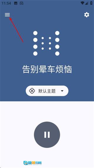 在防晕车主页面,点击左上角的菜单按钮,展开侧边栏菜单。