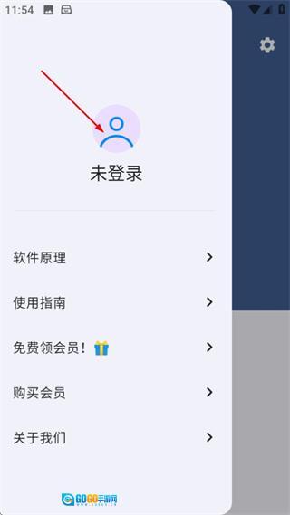 在侧边栏菜单中,点击未登录区域,进入登录页面。