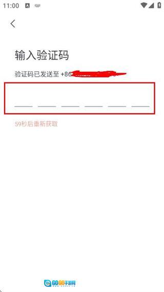 在短信验证码输入页面的输入框内填入接收到的验证码,以此完成账号登录流程。