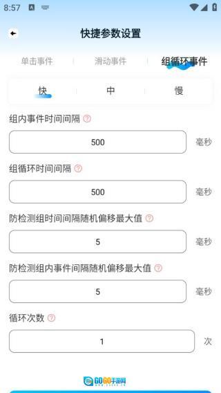 在快捷参数设置界面中,可进行单击事件、滑动事件等相关设置。