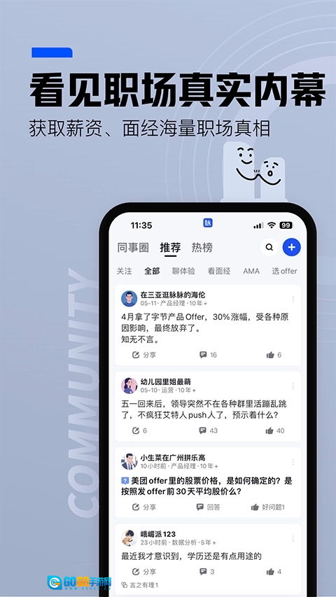 4.提供匿名社区功能,助力用户无顾虑地分享职场经验与见解。