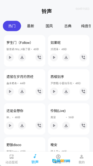 在铃声页面中有多种好听的铃声,可以随时设置;