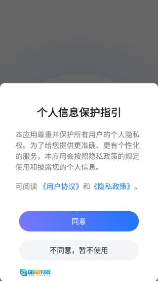 并安装后打开软件,进入时需先同意相关隐私权限。