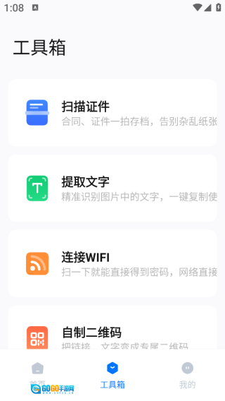 点击【工具箱】,就能体验扫描证件等一系列实用的玩机功能。