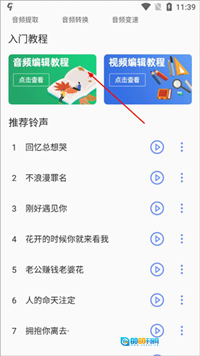 在首页下拉页面,用户可以找到简单的入门教程,便于学习操作;此外,推荐的铃声也支持插入到视频当中。
