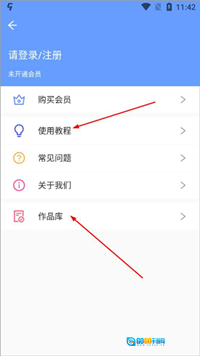 点击首页左上角的按钮,就能进入个人中心页面,这里不仅有软件使用教程,还设有个人作品库。