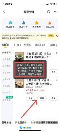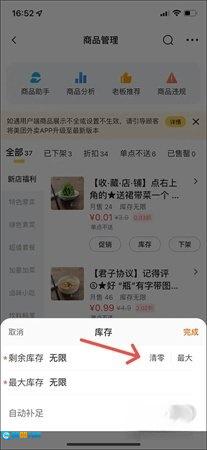 b、美团外卖商品若已售完,虽然无法直接设置下架,但可以将该商品的库存调整为零,这样顾客就无法下单了。