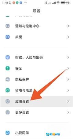 首先,打开手机的设置界面,找到“应用设置”这一选项并点击它。