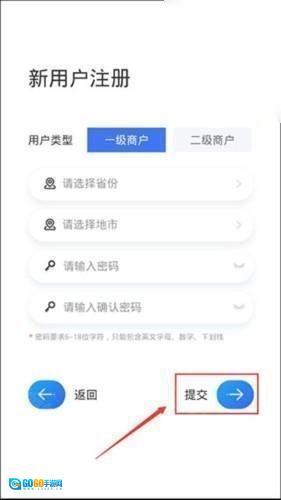 4、根据用户类型,填写相应的省份、地市、密码等信息,然后点击【提交】按钮。