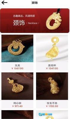 提供多种传统首饰,比如故宫平安扣、同心锁以及玉龙金和莲花杯等商品。