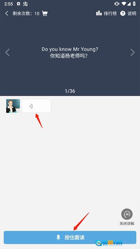 4、可以先点击听一遍,再按着下方的按钮点击跟读一遍。