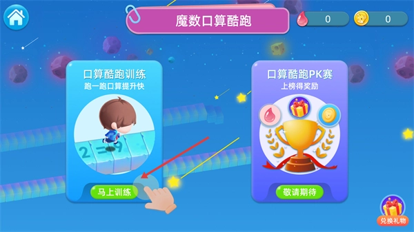 进入【魔数口算酷跑】主界面后,找到【口算酷跑训练】板块并点击进入,接着点击页面中的【马上训练】按钮,就能进入训练模式的难度选择界面了。