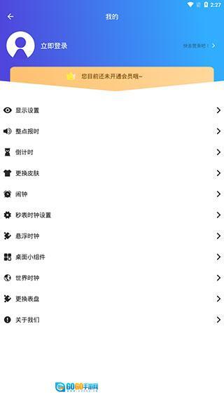 1、进入软件之后,我们就会看到醒目的时间显示,下方还会显示功能菜单。