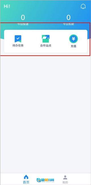 1、打开溪鸟驿站,首页可以查看待办任务、合作站点以及充值;