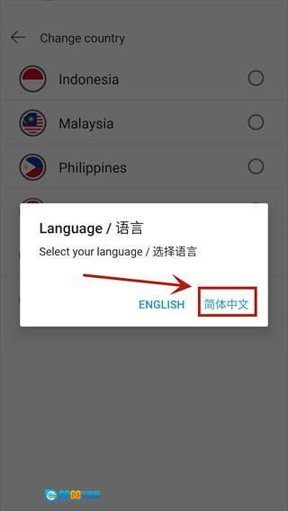 第三步,点击国旗标志,将地区选定为新加坡,并按下continue按钮。在随后弹出的窗口中选择简体中文,即可顺利完成设置。