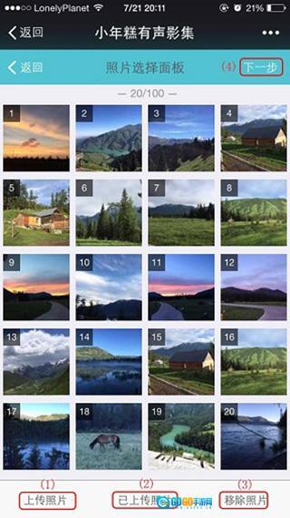 (1)点击“上传照片”从手机相册上传照片。一次最多上传9张,但可上传多次。