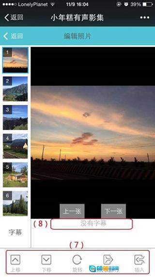 (7)编辑照片——点击“编辑照片”按钮可进入“编辑照片”页面。在这里可方便的调整照片顺序、照片方向或插入/移除照片。