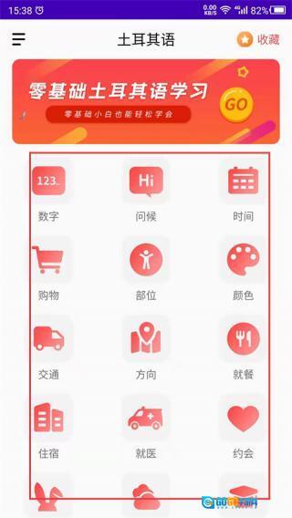 1、在首页选择分类(例如【问候】类),学习对应的土语词汇(比如Merhaba!)。