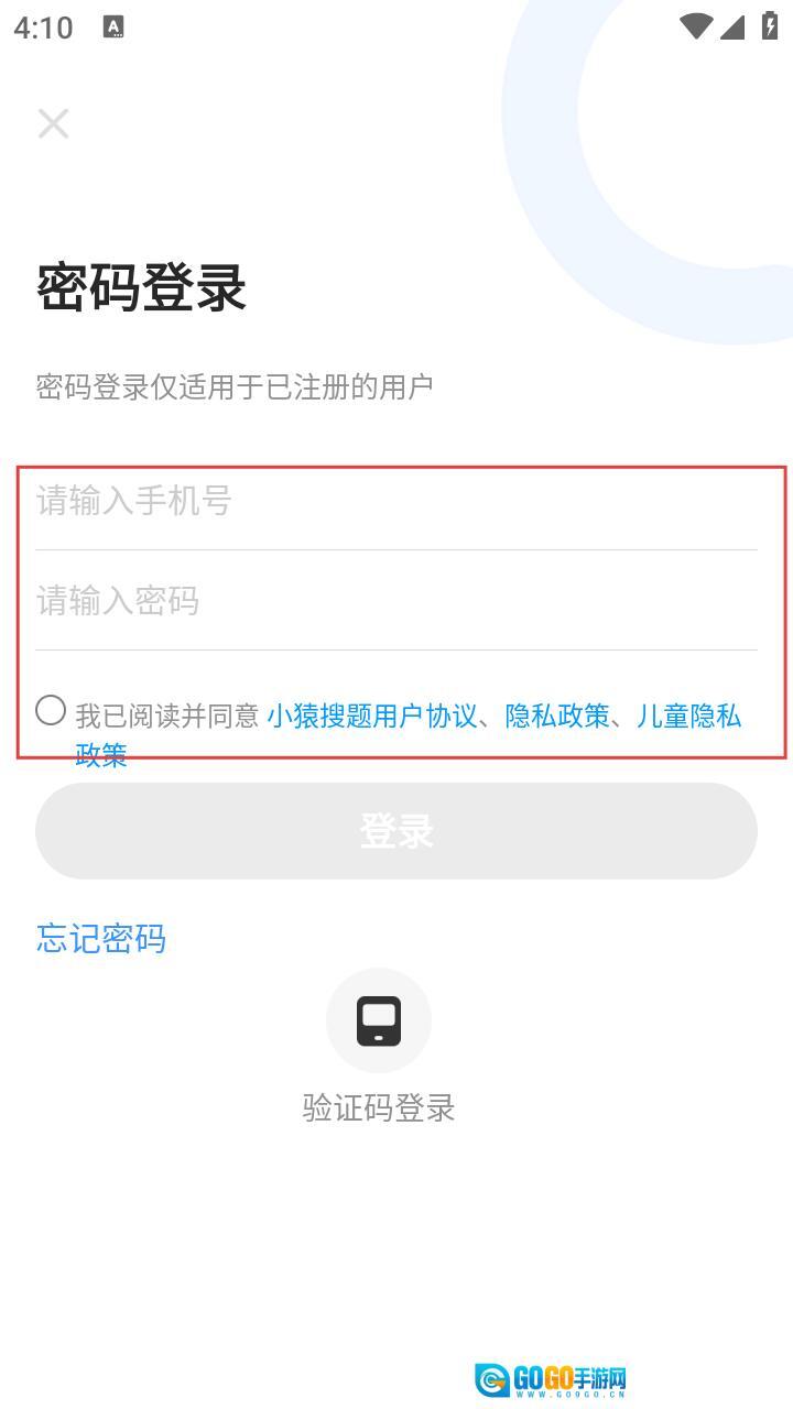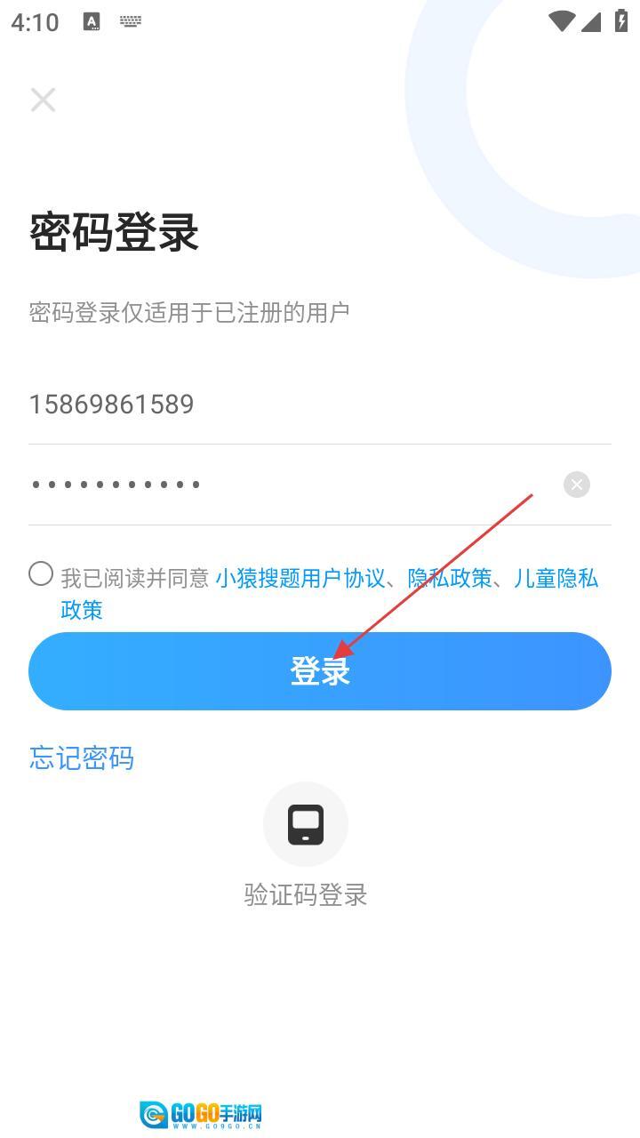 3、进入密码登录界面后,依次填写手机号与密码,并勾选同意相关协议。