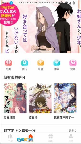 2、在首页界面下,我们不仅能够看到各种热门推荐漫画作品而且更是可以体验到分类、排行、新漫、推荐等一系列板块所带来的便利性。