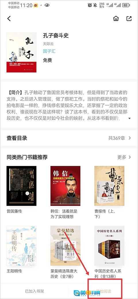 2、在书籍详情界面中点击开始阅读