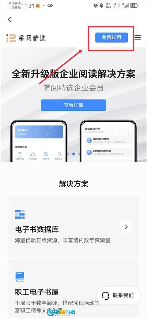 2、进入后点击右上角免费试用