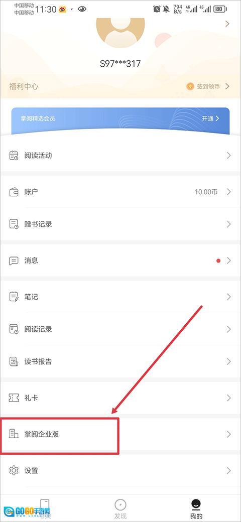 1、打开,在我的界面中点击掌阅企业版