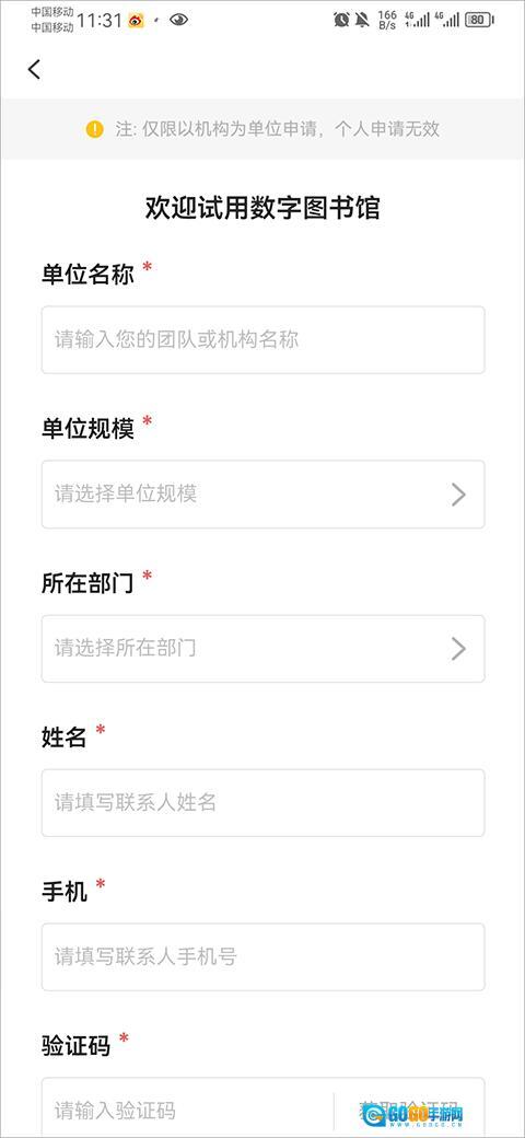 3、接着把单位名称、规模、部门等信息填写完整,再点击立即申请