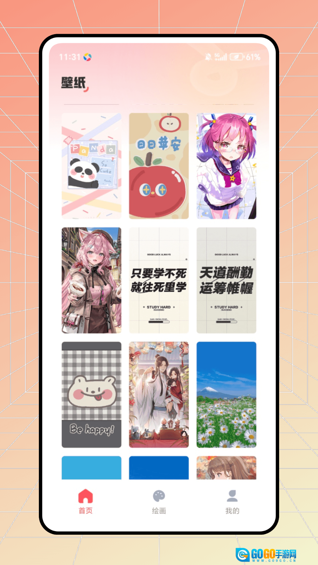 首页上有不少精美的壁纸,用户能够随时取用。