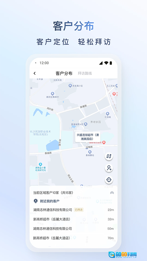 借助定位功能,就能在地图上查看自己周边所有客户及其分布的具体位置。