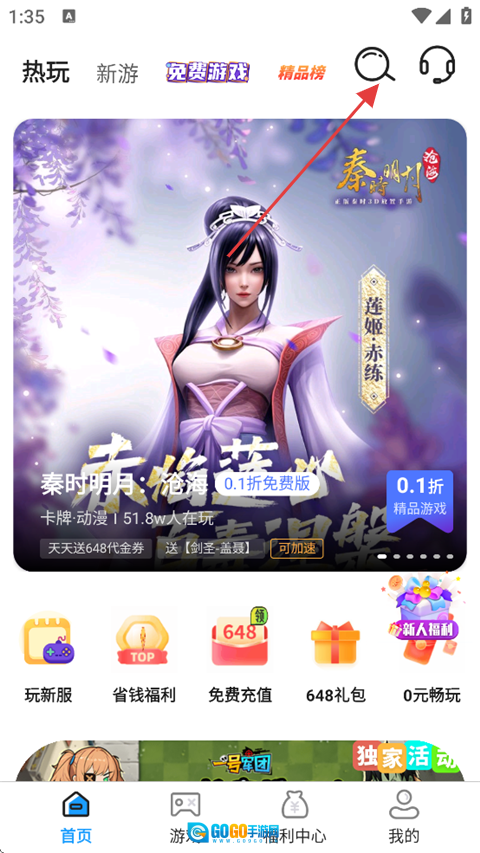 在首页,你可以通过顶部的搜索功能查找想玩的游戏,也能点击分类标签进行筛选。