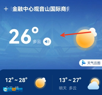 会马上呈现出当前地点的实时天气情况,涵盖气温、湿度、风力、风向、气压等具体信息。