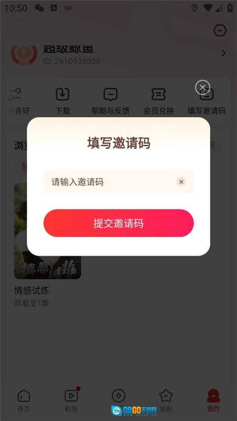 河马剧场怎么填写邀请码
