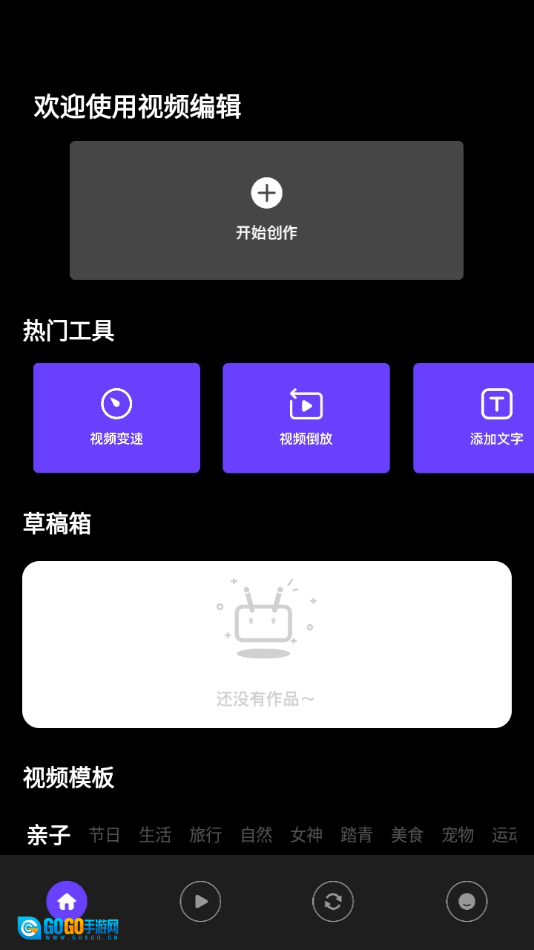 进入主界面后,导入视频、开始创作、模板库、草稿箱等核心功能入口清晰呈现,用户能轻松定位所需操作,且各类工具均配备教学指引。