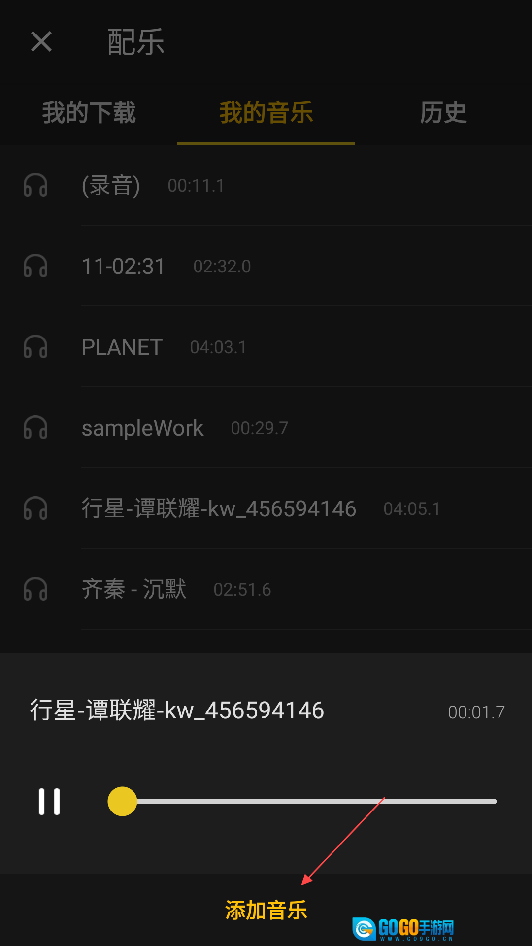 点击“选择你的音乐”按钮,挑选并添加你喜欢的音乐。