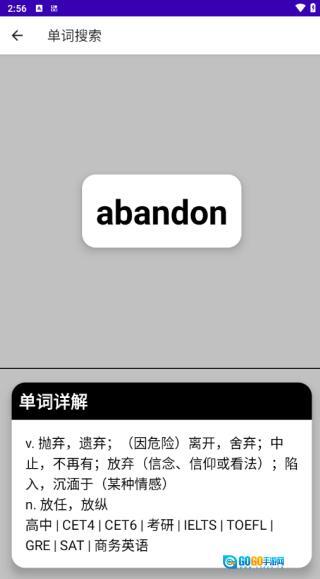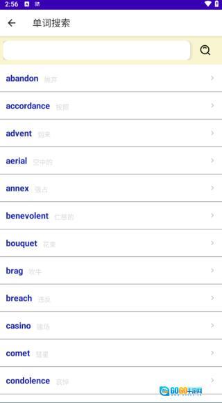 3、在单词搜索栏中可以直接搜索您想要了解的单词,这都是按照字母进行排序,点击一个进入。